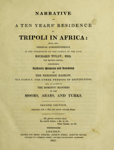 - Miss Tully, Narrative of a Ten Years’ Residence at Tripoli in Africa: From the Original Correspondence in the Possession of the Family of the Late Richard Tully, Esq., the British Consul: Comprising Authentic Memoirs and Anecdotes of the Reigning Bashaw, His Family and Other Persons of Distinction: Also, an Account of the Domestic Manners of the Moors, Arabs, and Turks (London: Henry Colburn, 1816, 2nd ed. 1817; republished by DARF: London, 1983)