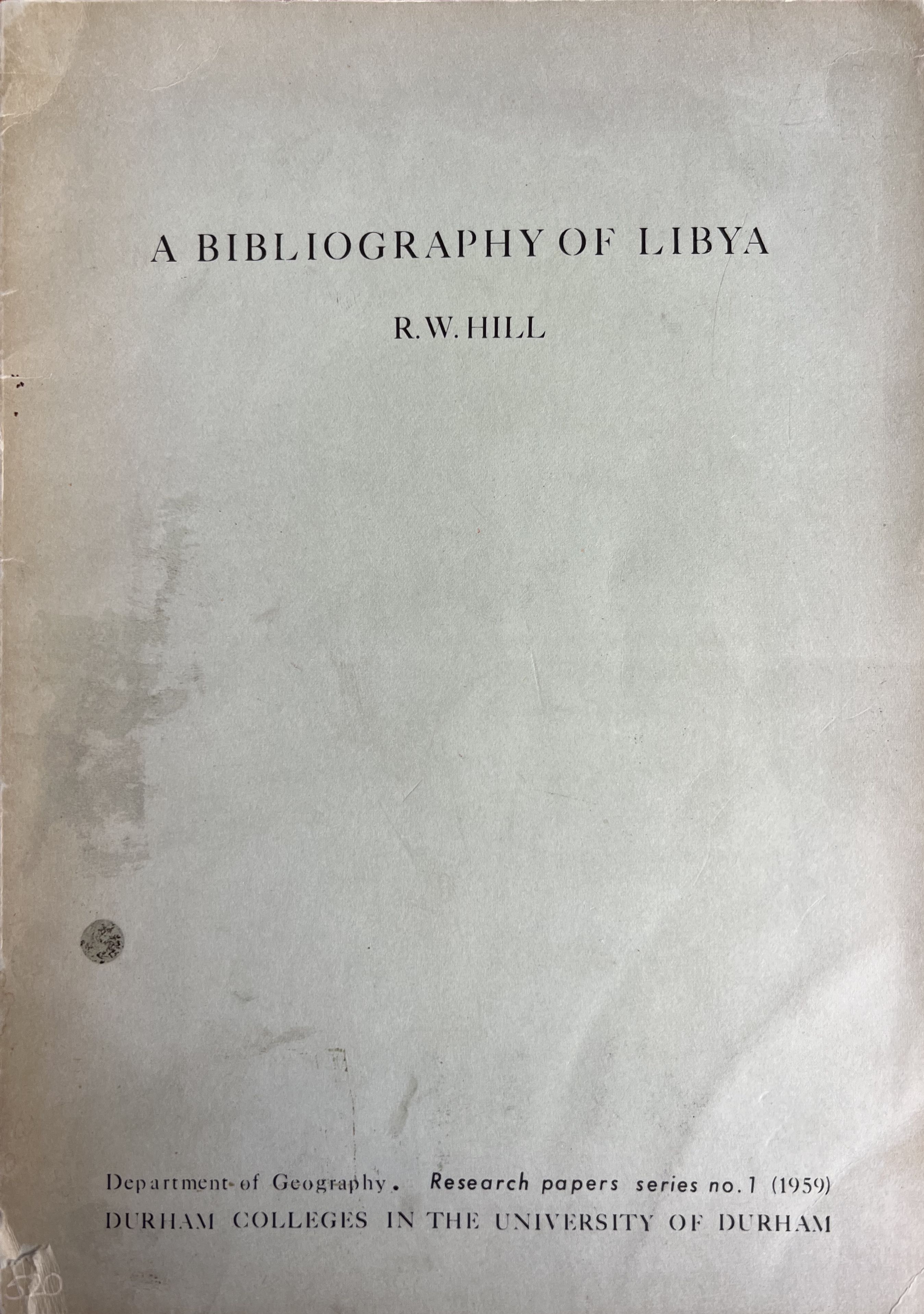 R.W. Hill, A Bibliography of Libya (Department of Geography, Research Papers Series No. 1, 1959). Durham.