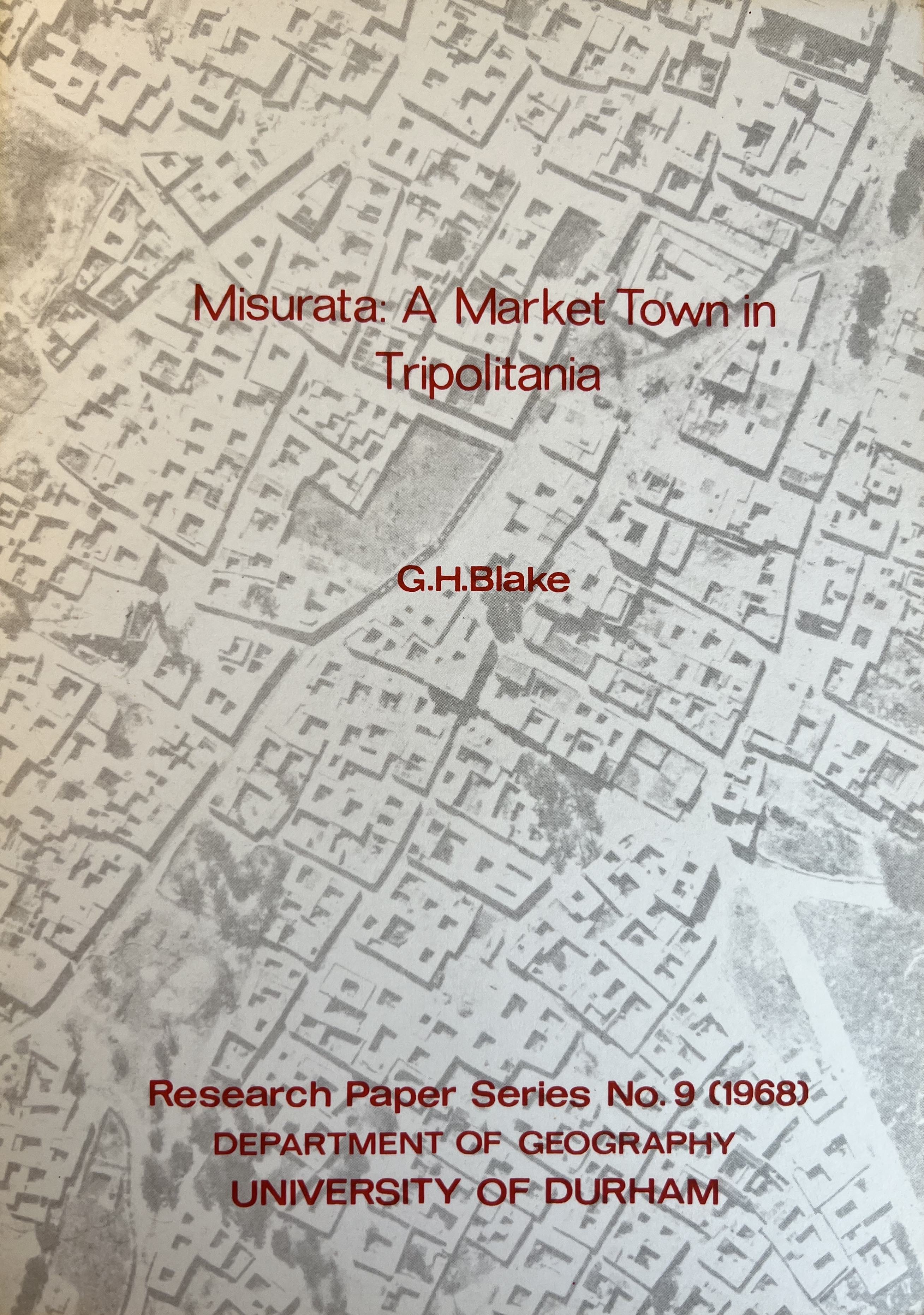 G.H. Blake. Misurata: A Market Town in Tripolitania (Department of Geography, Research Papers Series No. 9, 1968). Durham.